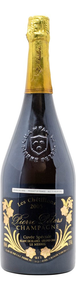 Reviews 91 points Wine Advocate "...The nose here strikingly suggests sauteed mushrooms on toast, along with hints of citrus oils, Latakia tobacco, smoky black tea, and the salinity that happily, mouthwateringly infiltrates the palate. Nutty piquancy adds to the savor of a sustained and intriguingly fungal, smoky and toasty finish. (DS)" 93 points Vinous "The 2005 Brut Cuvee Speciale Blanc de Blancs Les Chetillons from Pierre Peters is beautifully open and expressive, which is quite unusual in young Chetillons. That is good news for those who want to catch a glimpse of one of Champagne's most exciting wines. This is about as good as it gets in what turned out to be a very challenging vintage in Champagne. (AG)"